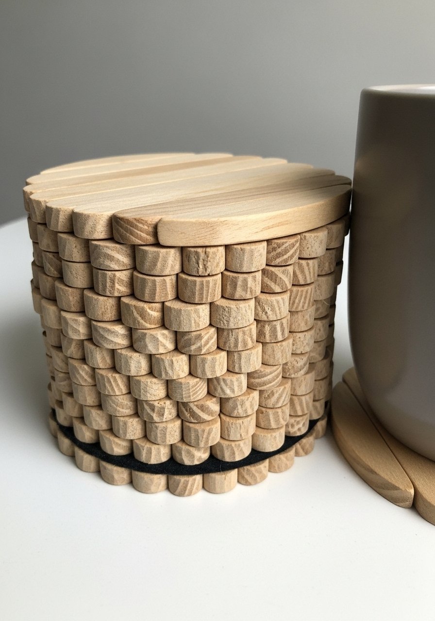 I glued popsicle sticks into round coasters, stained them, and added felt bottoms. They handle daily use and coordinate with wood accents. I use this felt pad pack to protect surfaces. Mistake: skipping sealant—add a clear coat so spills wipe clean. These inexpensive coasters read handcrafted and help me keep small space surfaces tidy.