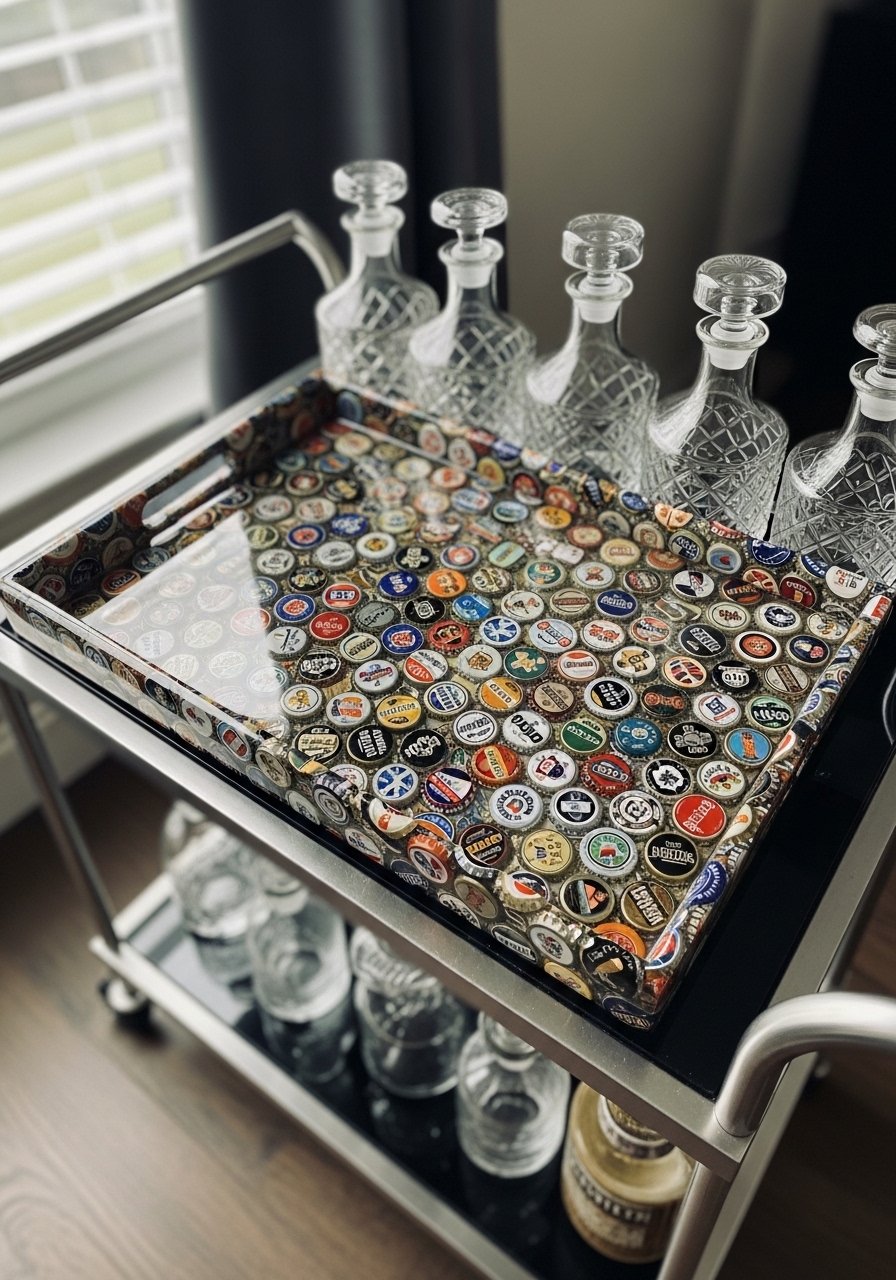 I arranged bottle caps into a mosaic and poured a thin resin coat for a glossy tray that’s surprisingly durable. I recommend this pour-on resin kit. Mistake: uneven caps—press them flat to avoid resin pooling. It’s a playful recycled piece that adds color and functions as a catch-all.