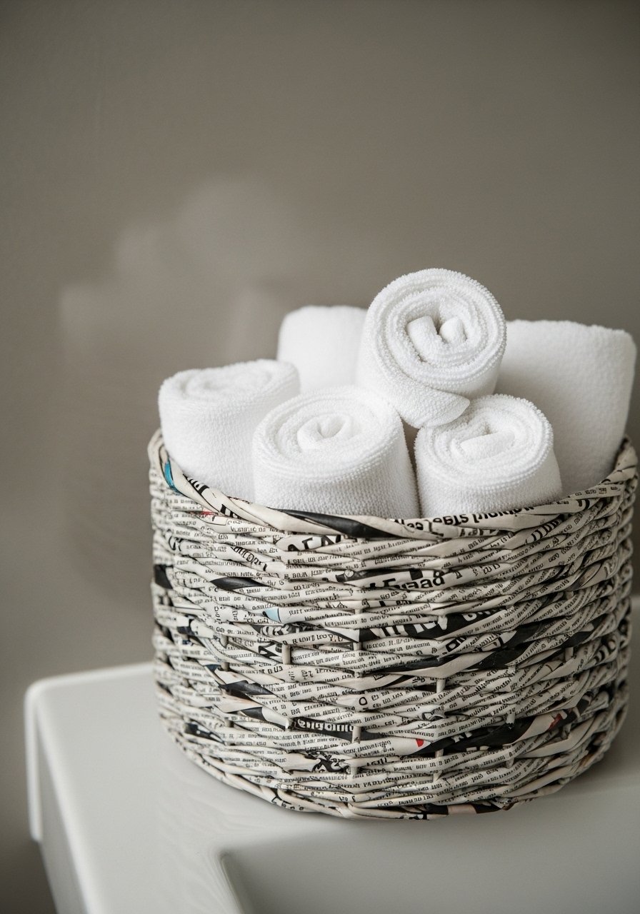 I rolled newspaper sheets and wove them into a shallow basket for storing small items. It’s sturdy when sealed and suits farmhouse or coastal palettes. I use this matte clear sealer to finish. Mistake: skipping reinforcement—add a cardboard base for structure. This cheap, recycled storage solves clutter vs. cozy balance in tight spaces.