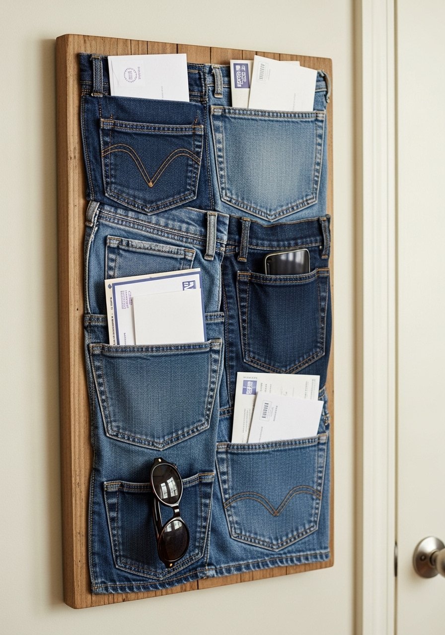 I cut pockets from old jeans and screwed them to a stained board to hold mail and sunglasses. It’s tactile and useful. I used these small cup hooks for keys. Mistake: shallow pockets—use deeper backings for heavier items. This upcycled organizer keeps clutter off surfaces and adds casual texture.