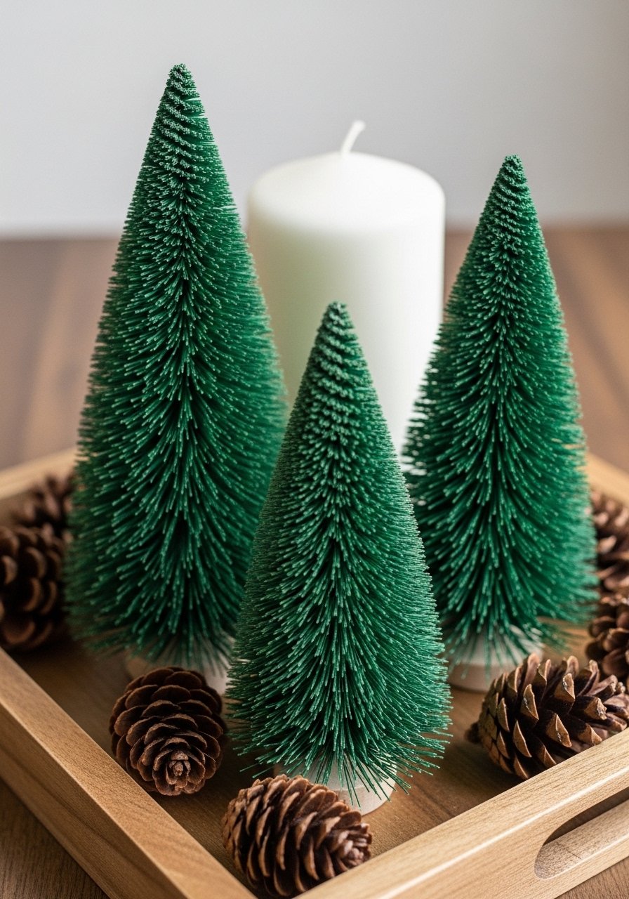 I reshaped old bottle brushes into mini trees, dyeing them with fabric dye for consistent color. I mount them on wood discs for table clusters. Use this fabric dye for color. Mistake: uneven bases—glue securely to avoid tipping. These are cheap, easy, and fit the shift toward subtle winter decor over loud holiday themes.