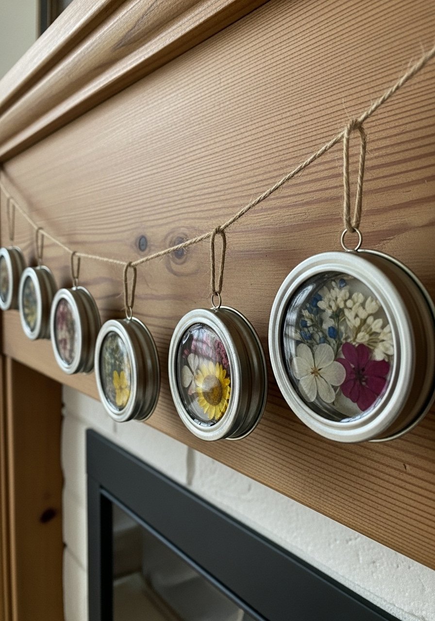 I filled spare jar lids with dried flowers and sealed them with clear resin, then tied twine loops. They hang well on mantel hooks and add subtle botanical touch. I use this small resin pack. Mistake: using wet botanicals—dry them fully first. These ornaments are a quiet, year-round nod to natural materials.