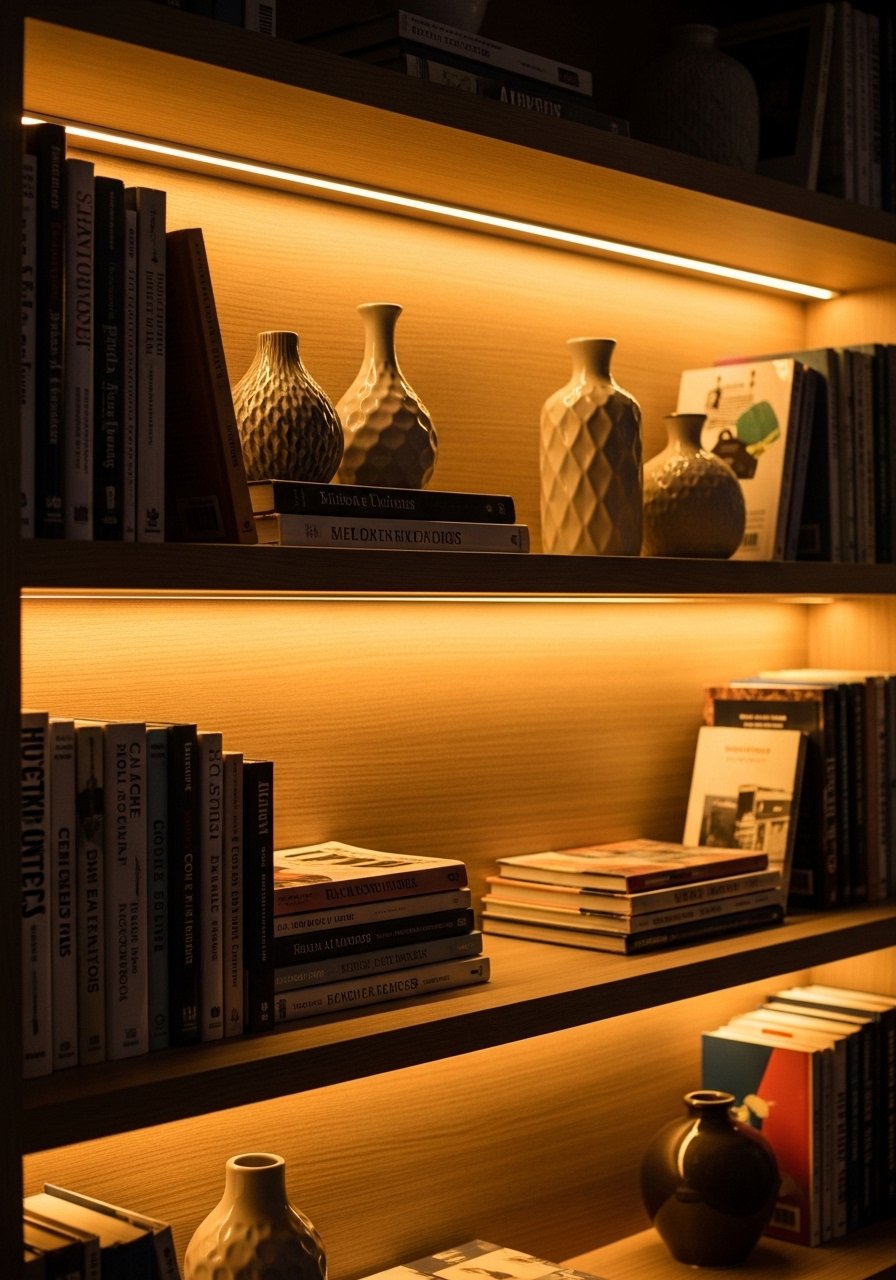 I added warm LED strips under a top shelf and the room suddenly felt finished at night. It makes things readable and cozy without harsh glare.