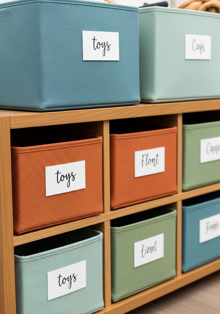 Use washable, sturdy baskets and clear labels for quick pickup.
