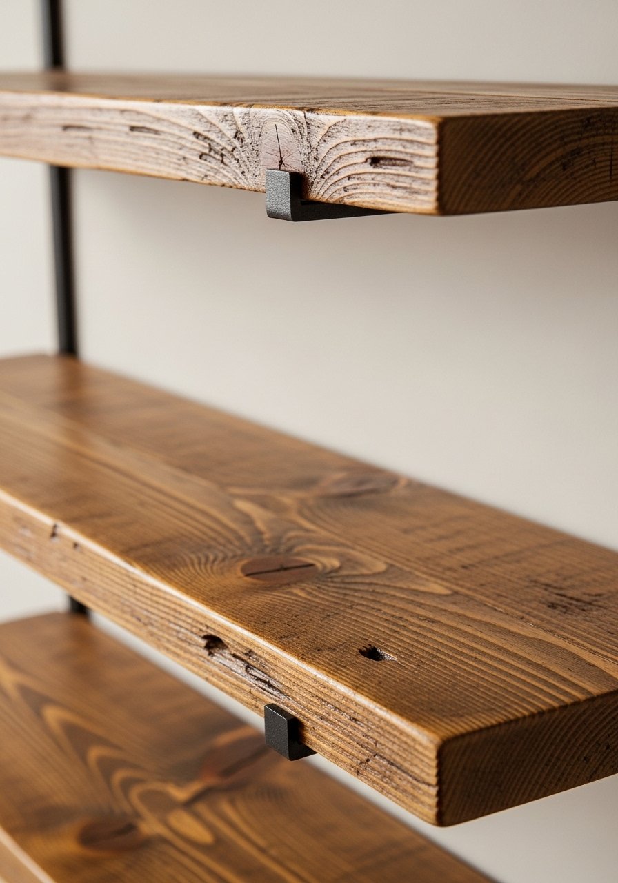 I built a pair of rustic floating shelves from reclaimed wood. They added texture and felt custom without a big budget.