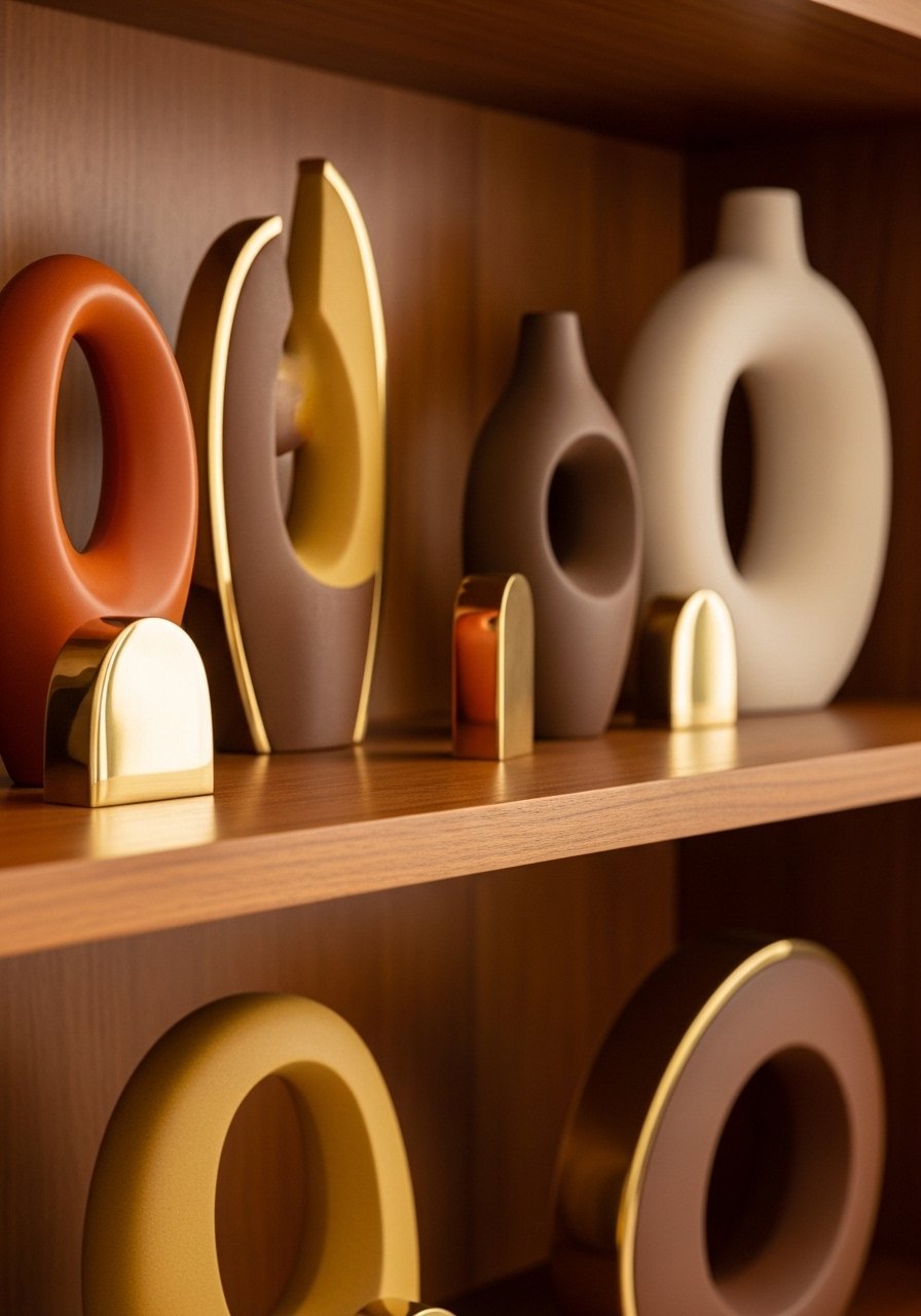 I curated a shelf with mid-century accents: low sculptural objects, a small teak bowl, and a brass detail. It feels cohesive without being fussy.