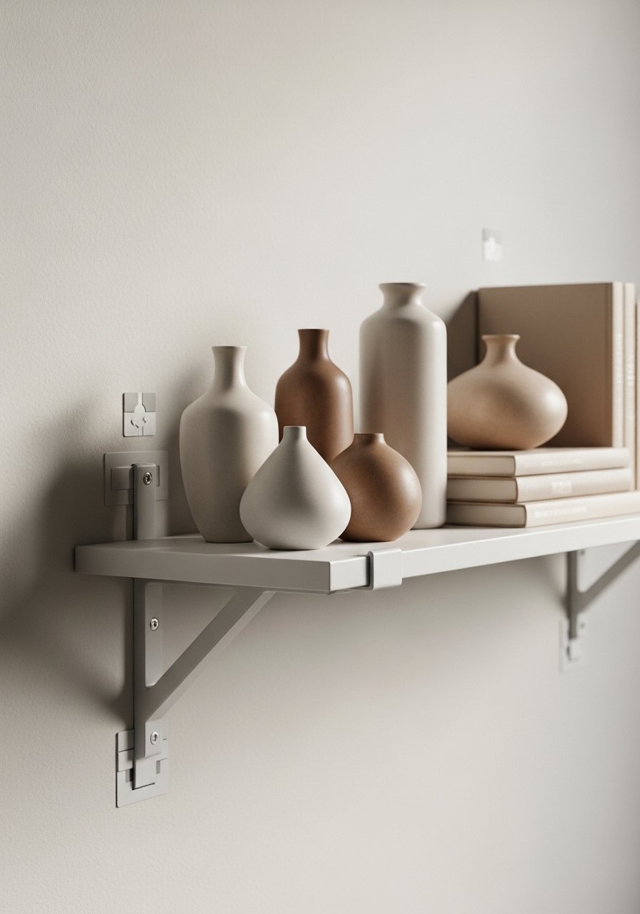 I use heavy-duty command-style brackets for lightweight shelves in rentals. They let me add a shelf without a drill.