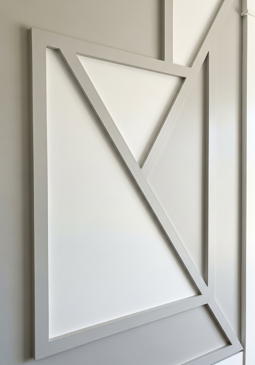 I cut inexpensive MDF into rectangles and painted a muted palette of warm beige, soft terracotta, and off-white to create a bold yet refined focal wall. The result feels curated, not crafty, especially when paired with a 36-inch round mirror nearby. Common mistake: skipping primer — panels soak paint unevenly. Use odd-number groupings and consistent spacing to keep the look modern and intentional.