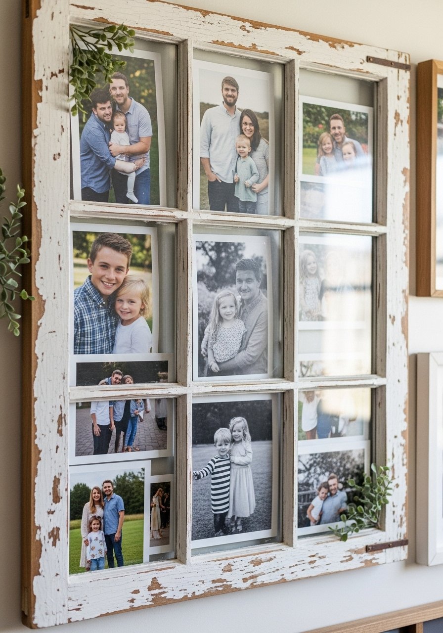 I scored an old 24×36 salvaged window and rewired it into a gallery with 4 small prints behind the panes. It anchors the wall and gives a collected-over-time story that looks far pricier than it is. I paired it with white picture mats 11×14 for a crisp finish. Mistake to avoid: overcrowding — let negative space balance the vintage texture for a modern, cohesive vignette.