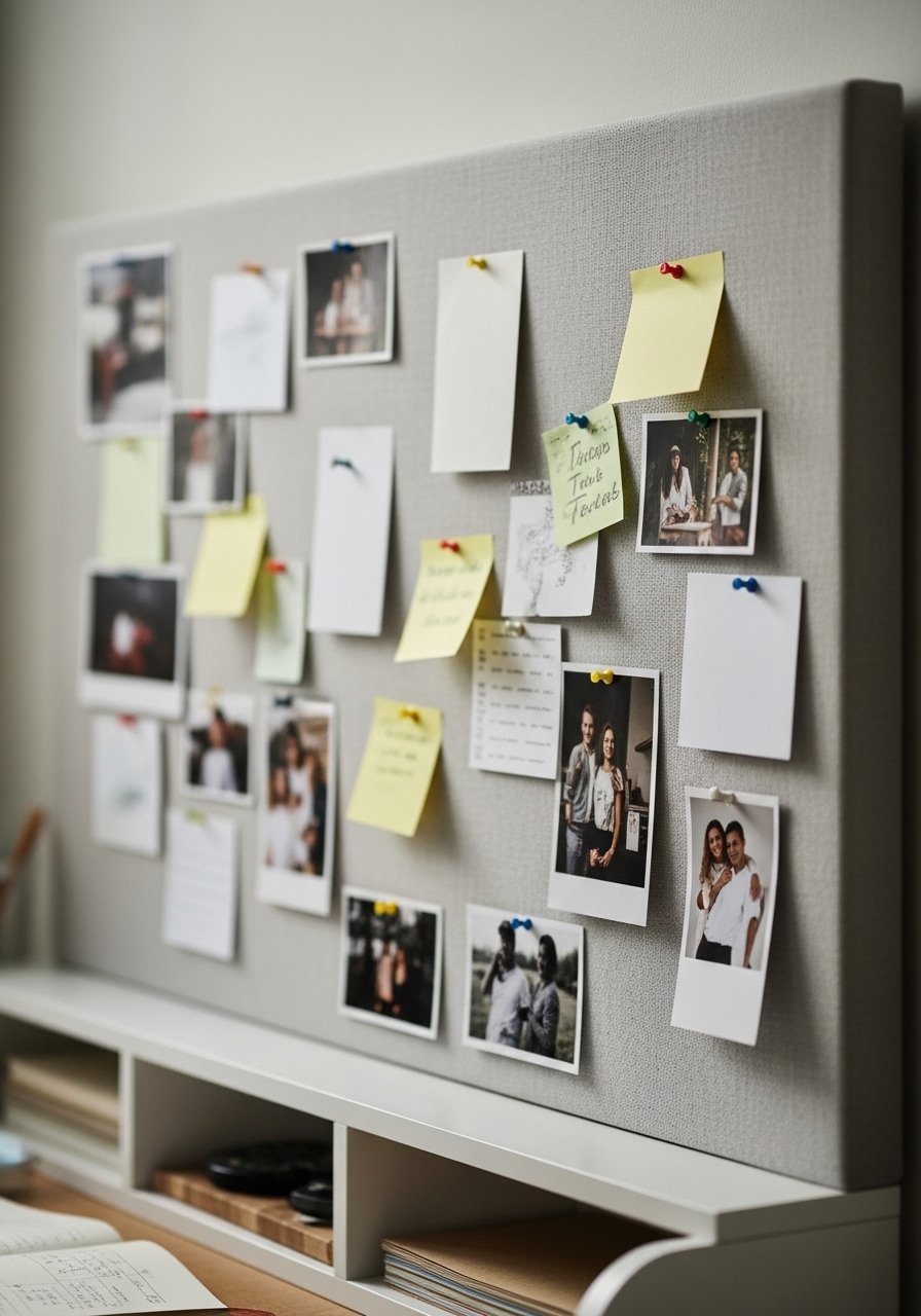 I covered a basic cork board with neutral linen and stapled at the back for a clean edge. It keeps to-do lists and prints organized and looks intentional instead of chaotic. I used linen-blend curtain fabric remnants saved from another project. Mistake to avoid: choosing a loud fabric for a small space — stick to warm neutrals to keep the area calm and work-friendly.