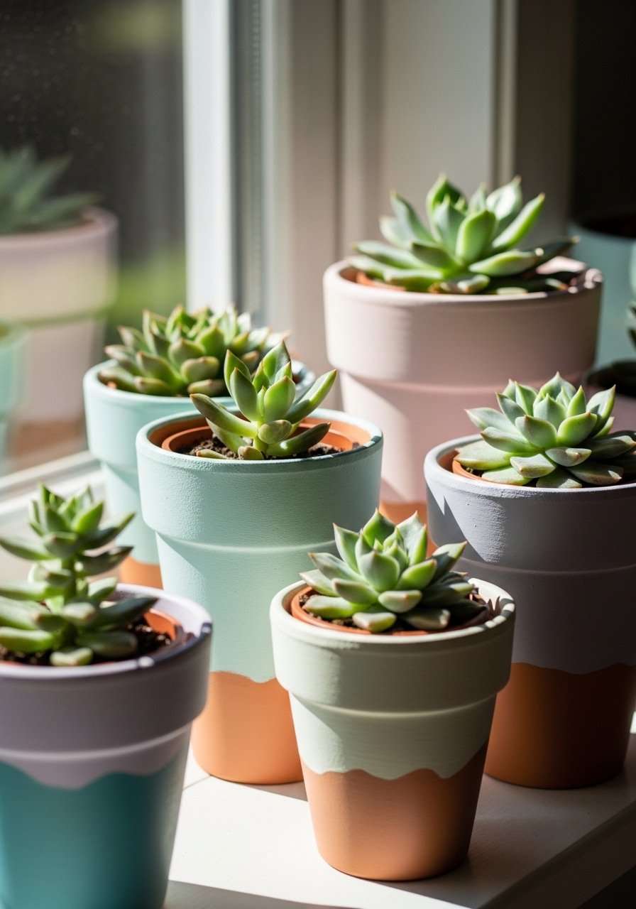 I painted terracotta pots in soft muted hues—sage, clay, and cream—for a coordinated plant display. Group them in odd numbers and vary heights for that layered, textured vignette I love. I planted small succulents and used this set of terracotta pots to start. Mistake to avoid: painting the rim too thickly—leave a bit of raw terracotta visible for contrast and breathability.