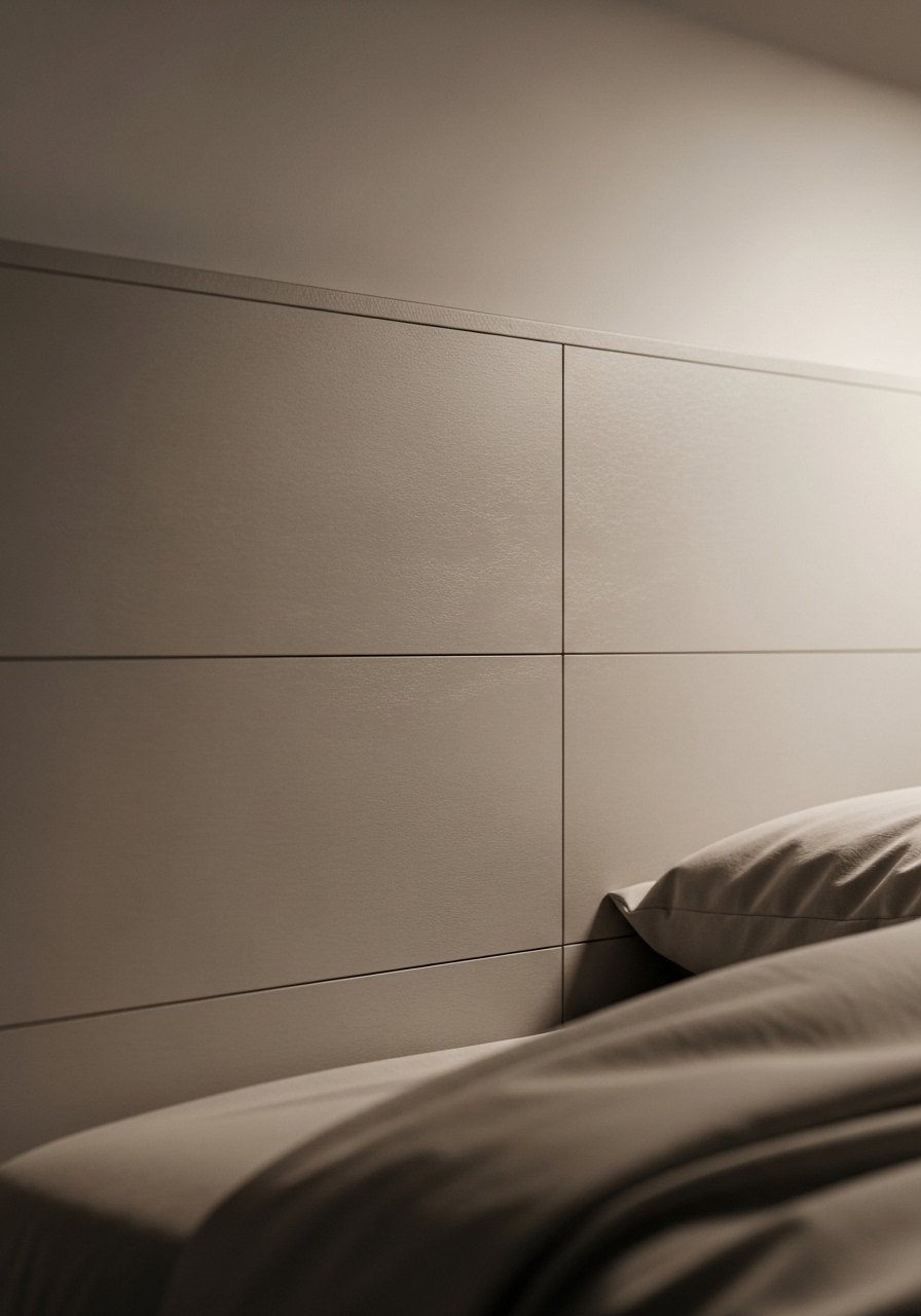 I added peel-and-stick panel moulding behind my bed to anchor the room. It gave me architectural interest without a contractor. I admit I bought too glossy a panel at first — matte or paintable is better.