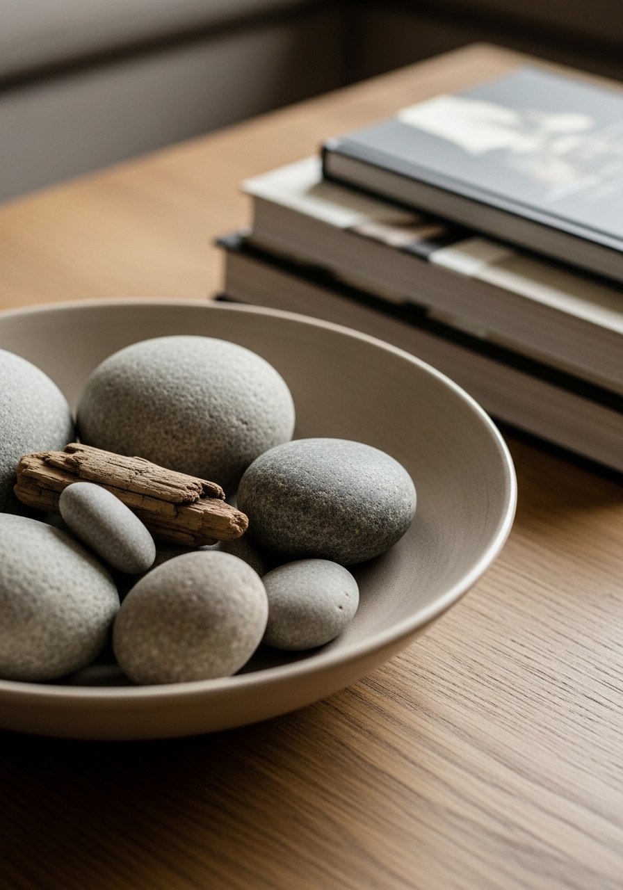 23. Bowls of River Rocks and Driftwood Instead of More Plants