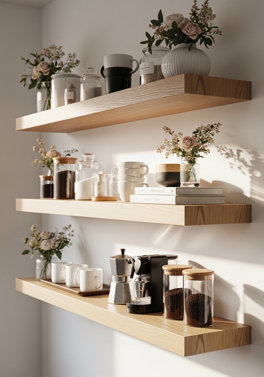 Floating Shelf Refresh with Curated Coffee Bar — Cozy Cottage