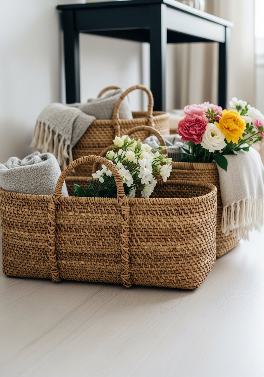 - Woven rattan basket set, medium (~$25-45)