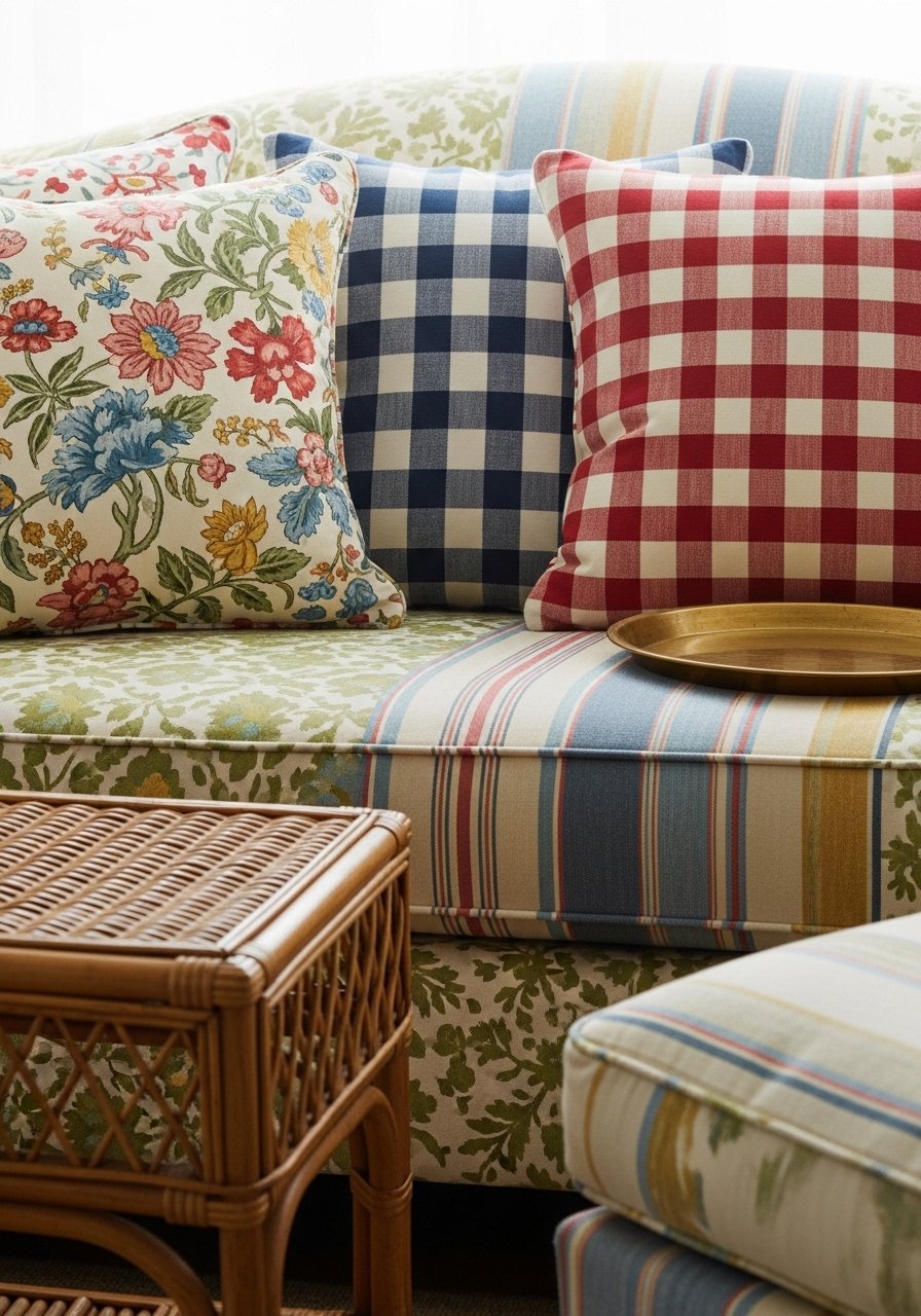 Vintage Pattern Mixing on a Cozy Sofa — English Country Layering