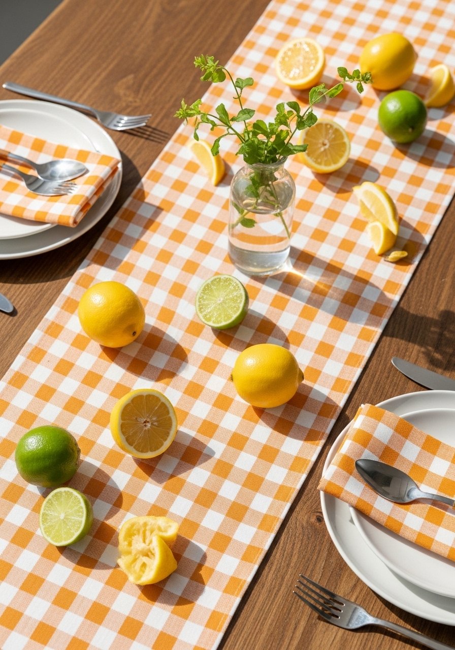 I love a gingham runner for that instant brunch-ready vibe—paired with citrus accents it reads bright and casual. I used a gingham table runner and layered napkins in soft pastels. Keep centerpieces low and use odd-numbered groupings for visual interest. One mistake is choosing a runner that’s too narrow; it should extend past place settings for balance. This is an easy budget spring refresh that feels both festive and everyday-friendly.