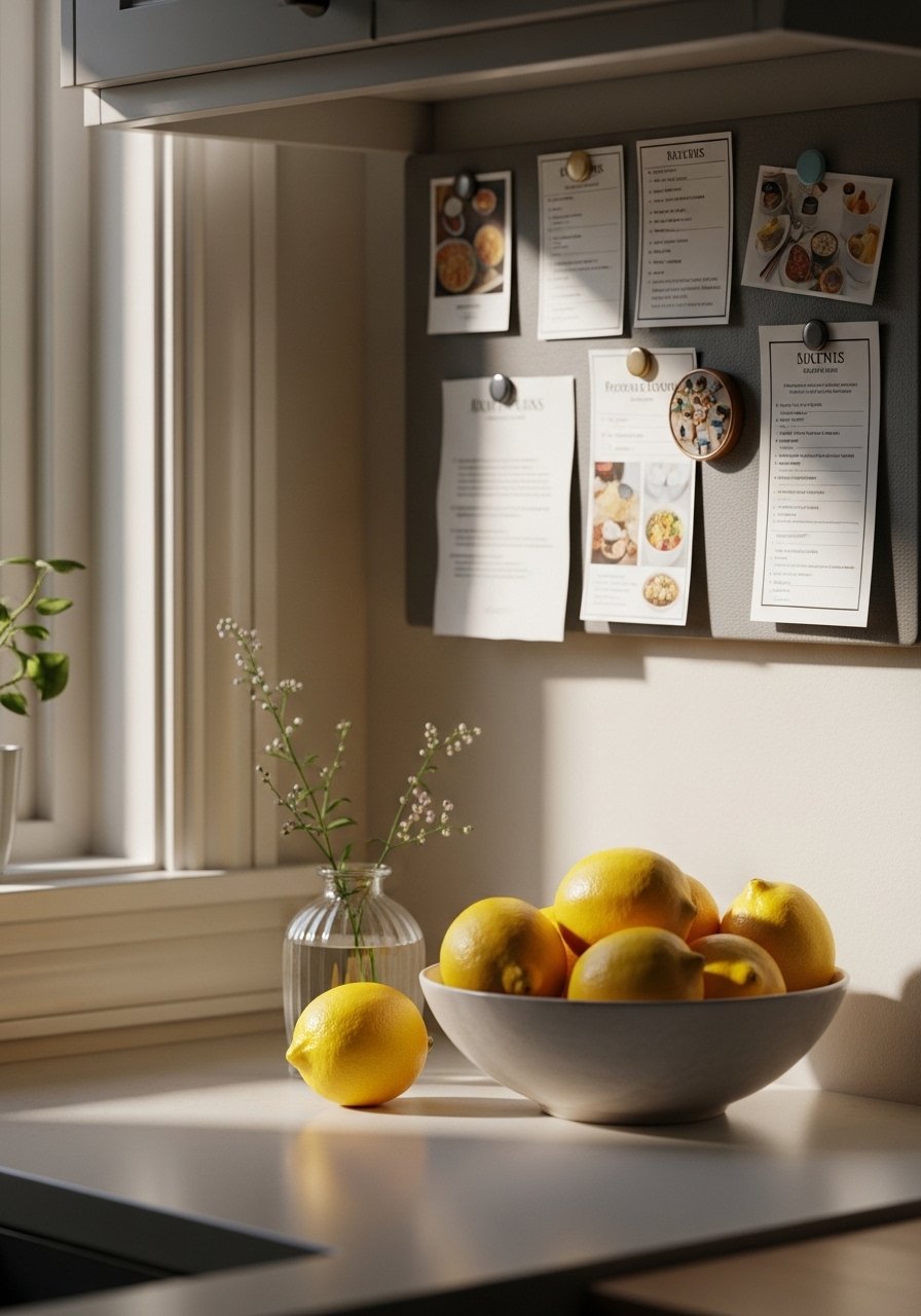 My small kitchen got a seasonal boost from a bowl of lemons, a tiny vase of viburnum, and a framed seasonal print. A small ceramic bowl is inexpensive but effective. The goal is a few intentional accents that add vibrancy without taking up counter space. Avoid tall decor that blocks prep zones—keep it functional. These small kitchen decor swaps made my mornings feel sunnier without an overhaul.