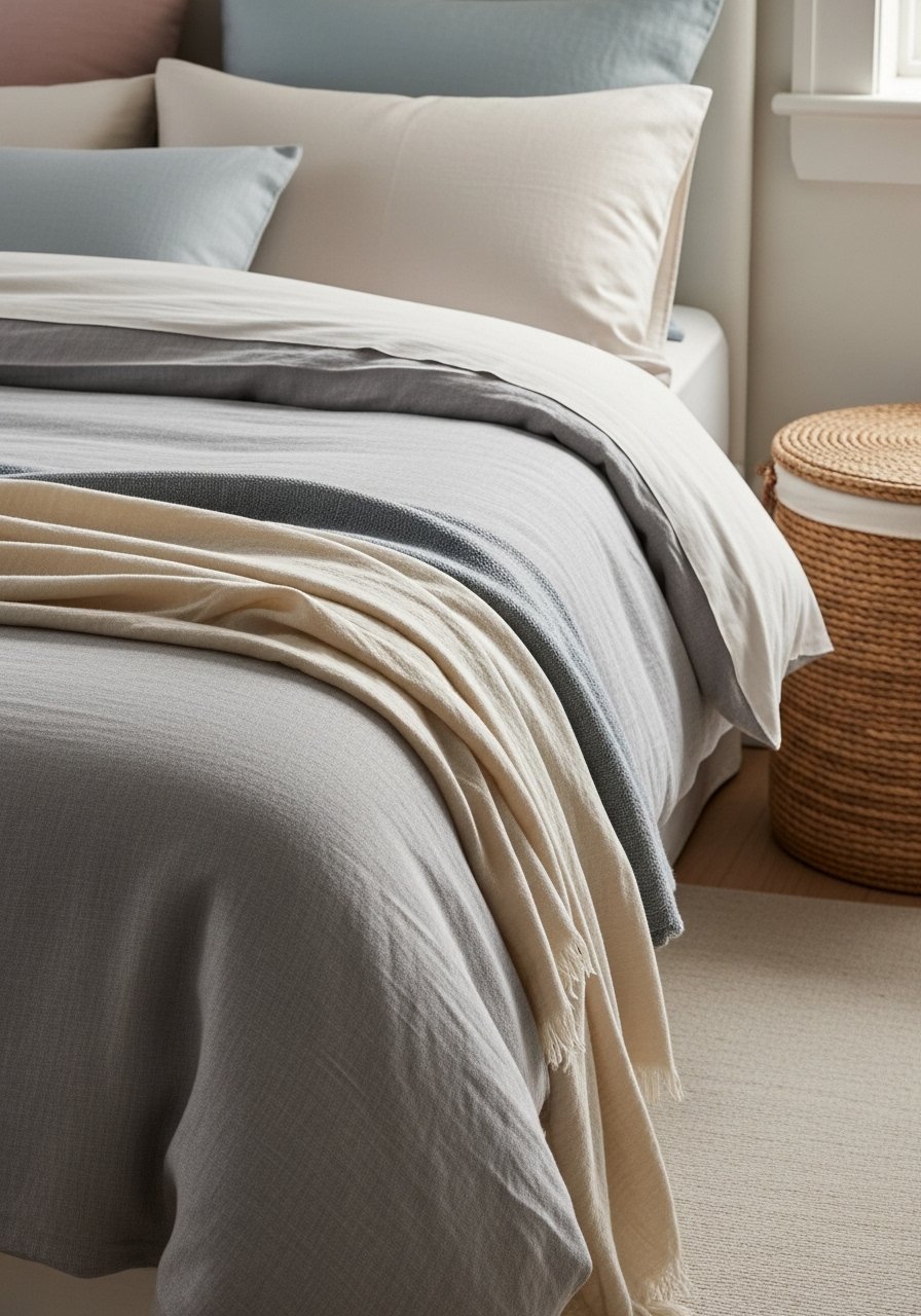 I replaced heavy winter bedding with a linen duvet, a thin cotton throw, and a mint bolster for a cozy spring guest bed. A linen duvet cover breathes and layers nicely. Keep colors soft and add one playful figure like a ceramic bunny on the nightstand. Avoid too many textures that make the bed feel busy; aim for three layers maximum for comfort and visual calm. Guests always comment that the room feels fresh and airy.