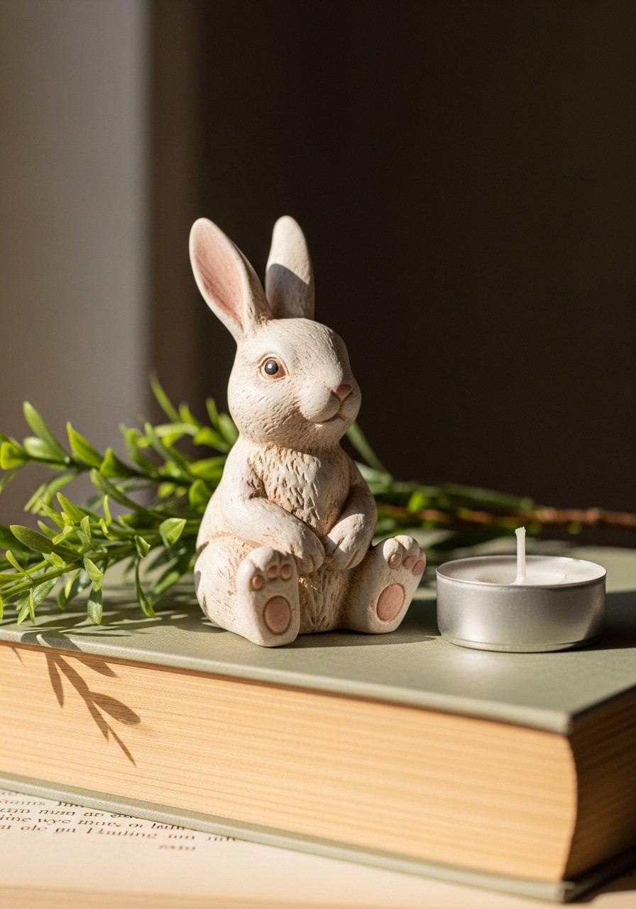 I use one ceramic bunny as a subtle nod to spring—placed on a book or tray to keep it from feeling kitschy. A small ceramic bunny figurine is affordable and easy to tuck in. The key is restraint: one playful figure against a neutral base is intentional. Avoid plastering bunnies everywhere; pick one spot and style around it for a refined farmhouse spring vignette.