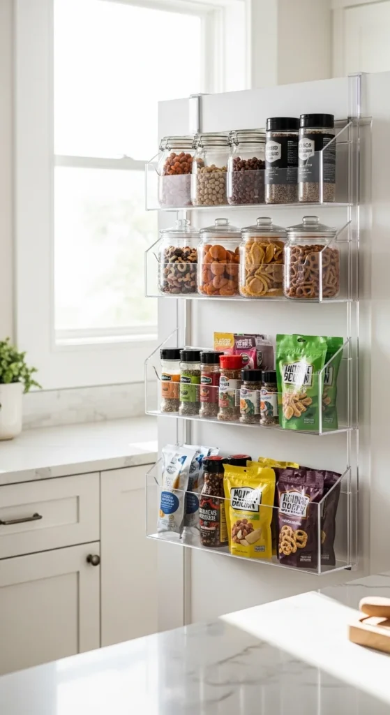 Maximize pantry storage by hanging an over-the-door organizer. It’s perfect for spices, snacks, and small bottles.