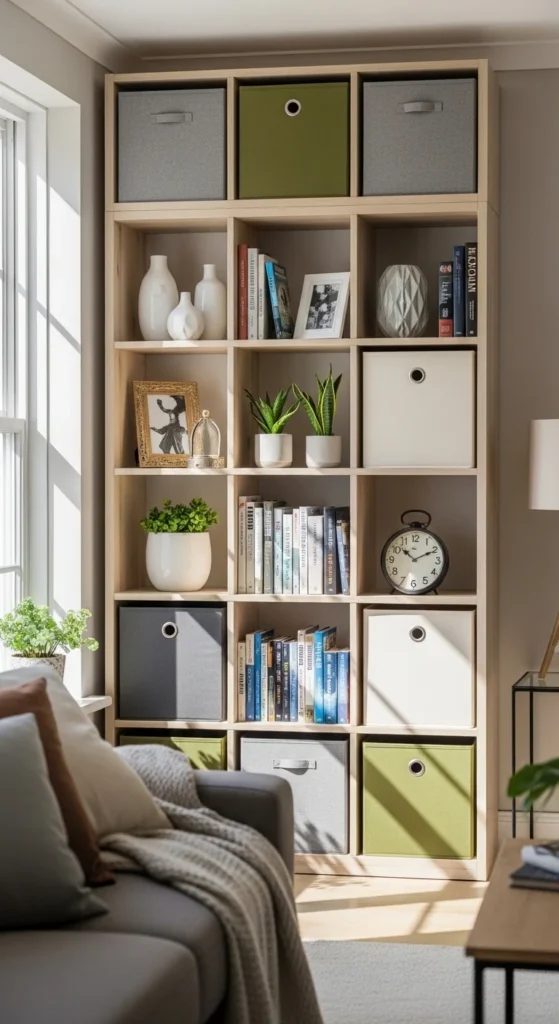 Budget tip: buy second-hand units and repaint them. Cube systems work in bedrooms, offices, or entryways and grow with your storage needs.