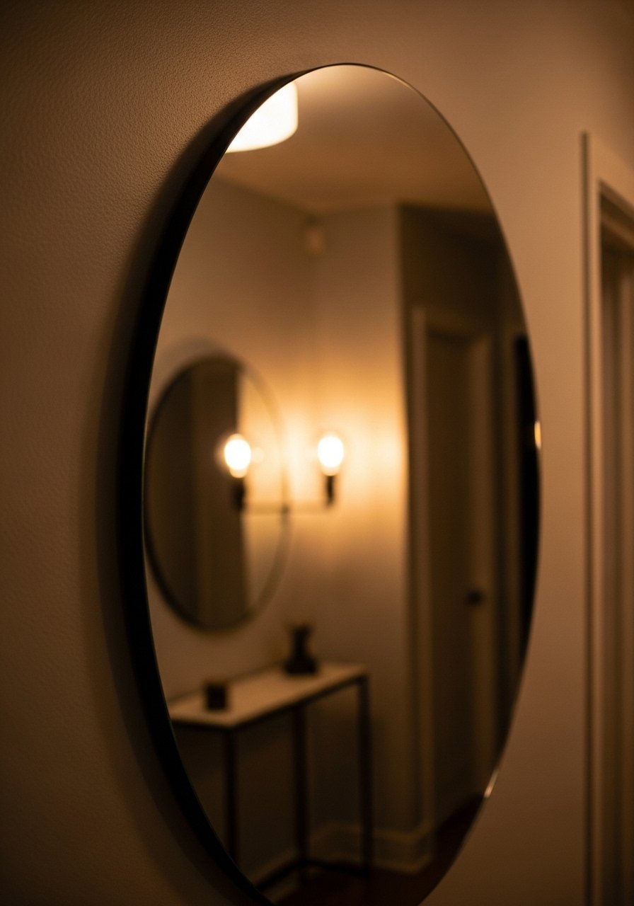 Oversized Round Mirror To Brighten Dark Corners In A Hallway