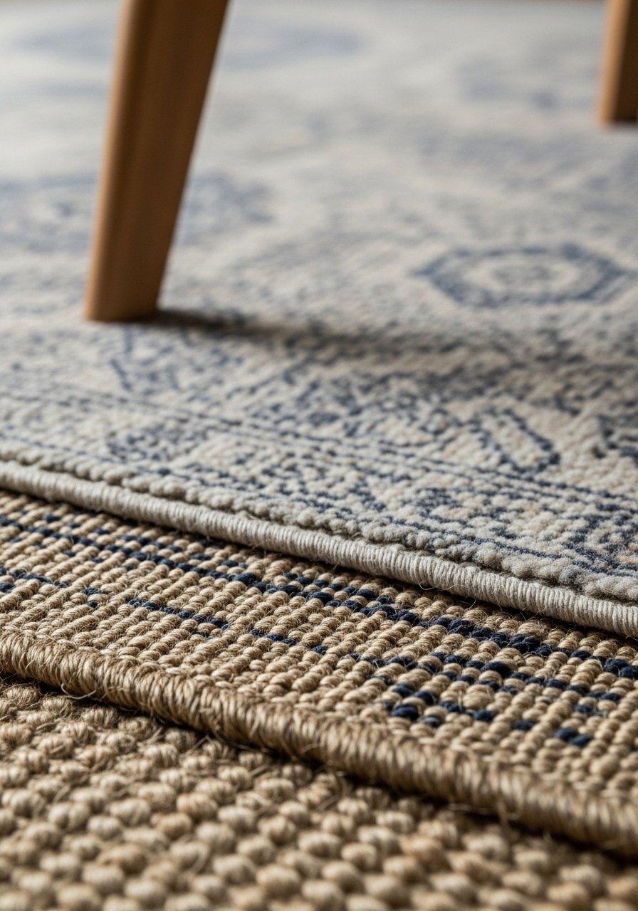 Layering rugs fixed my room's scale. I used a 9×12 jute underlayer and an 8×10 wool rug centered in the seating area. Rugs ground furniture and add texture. Works in open plan living rooms and under dining tables. Budget $80 to $600 based on materials. I started with a neutral jute rug and added a smaller patterned rug. Too-small rugs make a set look disconnected. Make sure front legs of seating sit on the top rug.