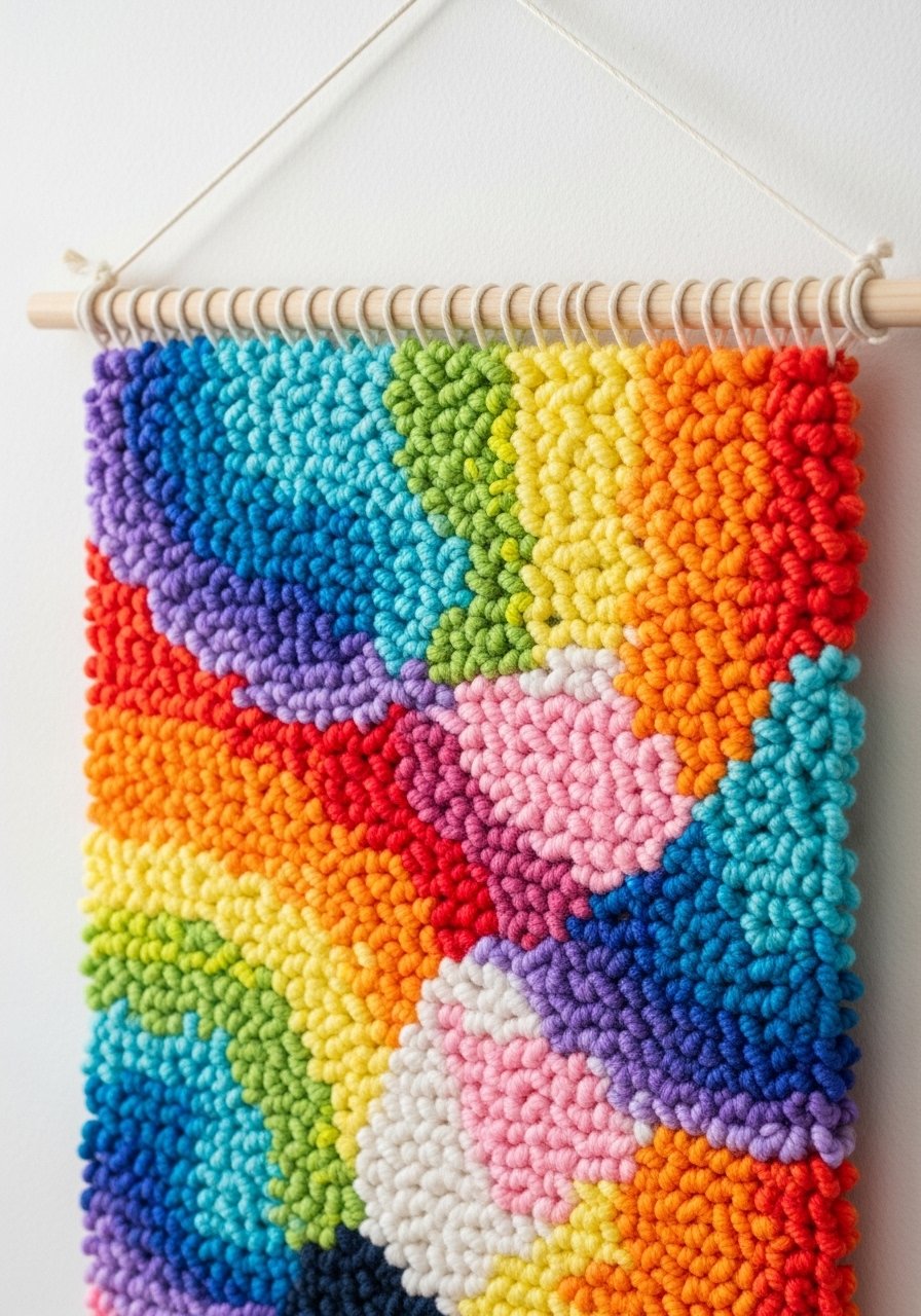 DIY Rainbow Latch Hook Wall Hanging — Boho Accent for Playful Walls