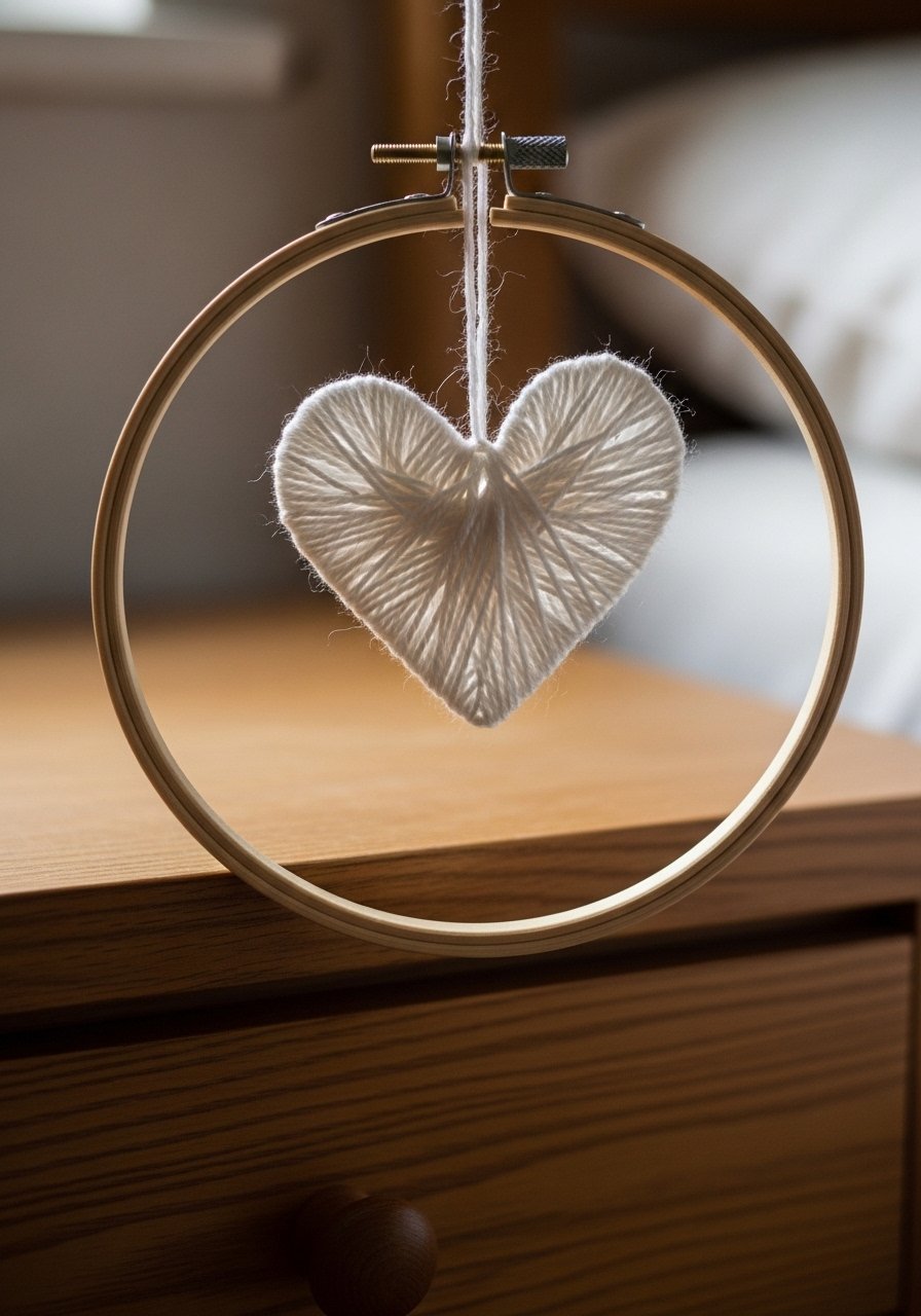 A simple yarn heart on a 10-inch wooden hoop made my tiny bedroom feel instantly cozier. I wrapped macrame cord and pastel yarn around a hoop and added small fabric scraps for depth. I like this cotton macrame cord in off-white for a full look. Common mistake: using too-thin yarn—heart shapes need body to read from a distance. This DIY wall hanging is customizable and perfect for renters who want a personal touch.