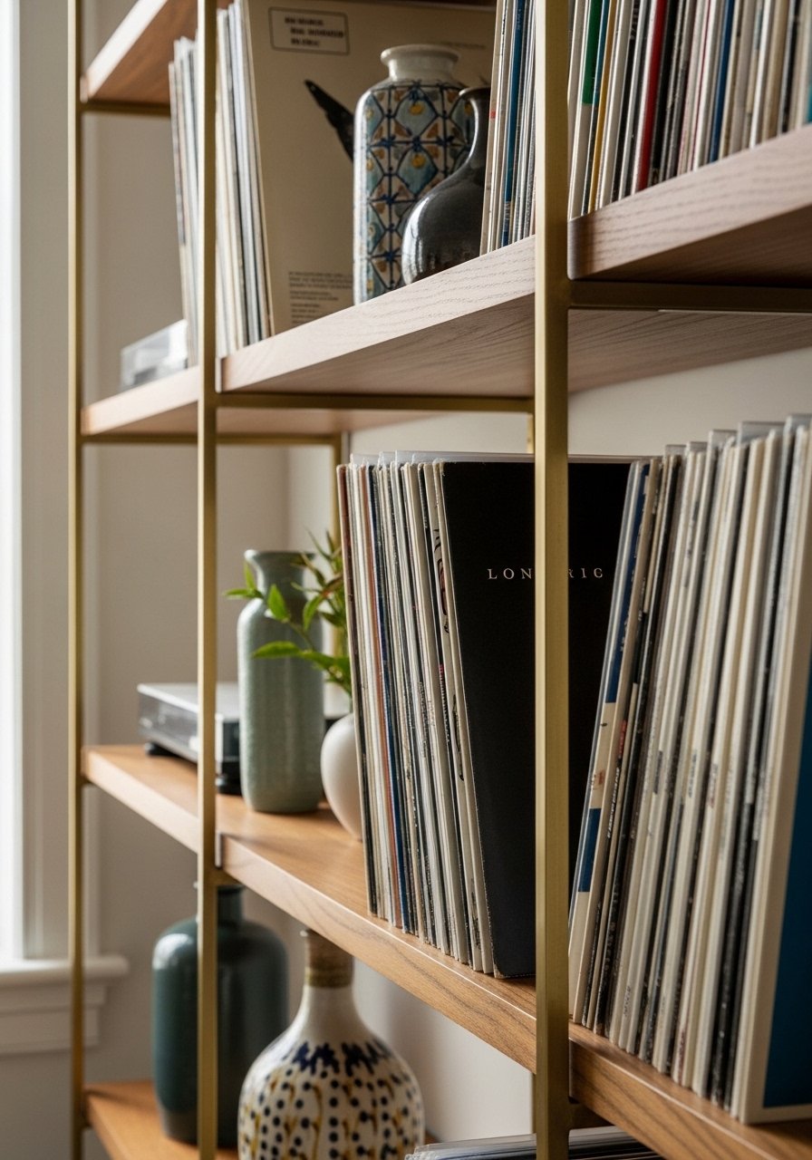 Vinyl Records Shelf Display for Industrial Living Rooms