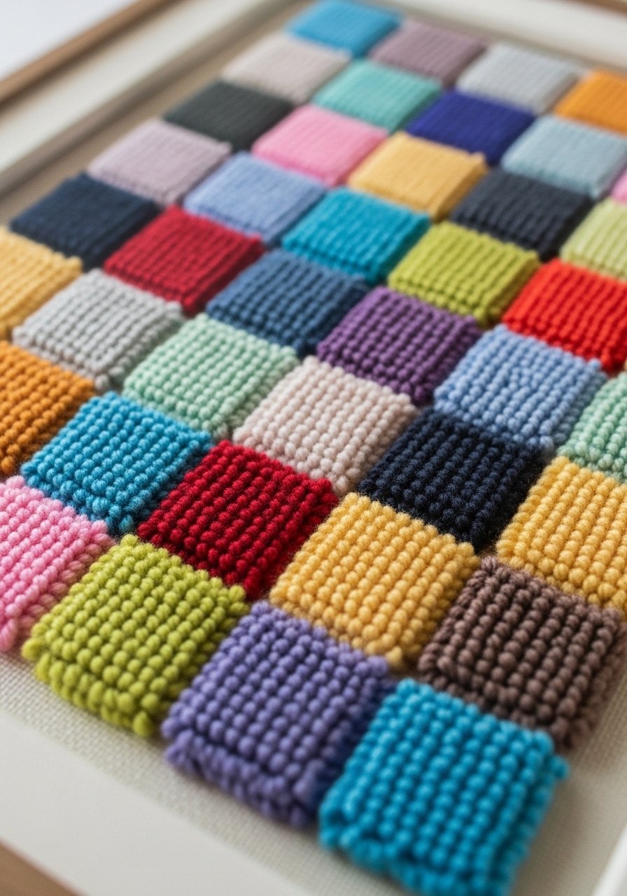 I framed multiple 8×8 latch hook panels in a 3×3 grid for a mosaic of texture and color. The modular approach lets you change pieces seasonally. I recommend small latch hook kits. Common mistake: mismatching frames—use identical frames and mats for cohesion. This handmade wall hanging adds DIY charm and customizable colors so it reads intentional, not amateur.