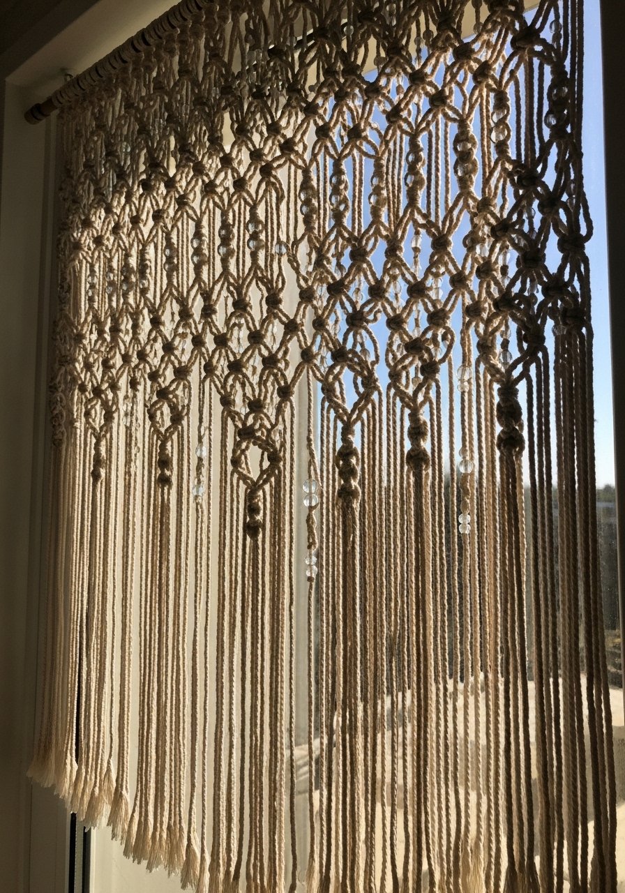 I swapped a plain doorway for a beaded macrame curtain and the transition felt softer. Use cotton cord, wooden beads, and a sturdy rod for a slightly bohemian divider. I used beaded curtain kit. Mistake: making knots too tight—the curtain should sway. This DIY wall hanging is great for creating zones in studio apartments and keeps things airy while adding texture.