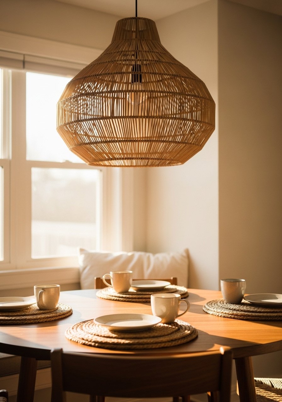 Rattan Pendant Over A Casual Breakfast Nook