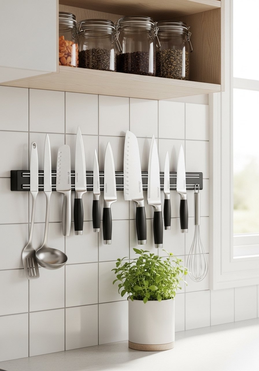 Magnetic Knife Strip And Vertical Storage For A Clean Kitchen