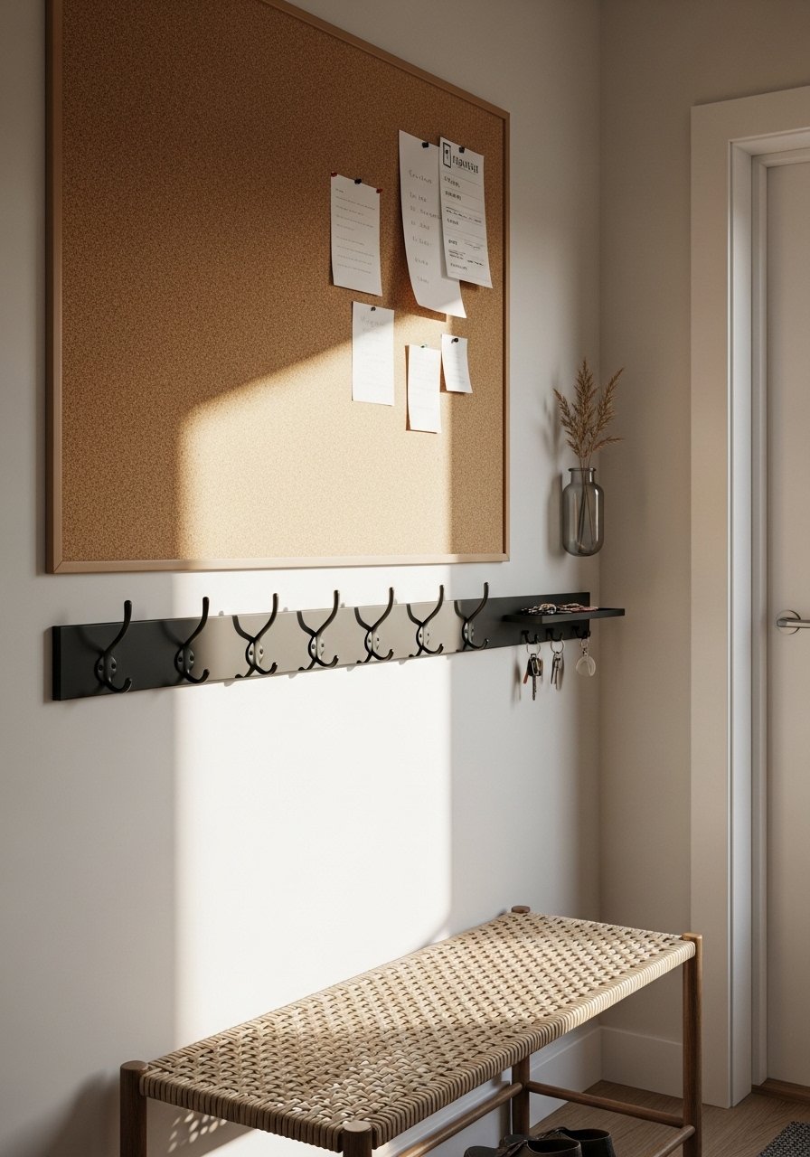 A slim command center tamed my drop-zone chaos. I mounted a cork board and wall-mounted hooks set above a narrow bench to hold bags and mail. The key is keeping it narrow so the entryway still breathes. Don’t overcrowd with mismatched hooks; pick one finish and repeat it for cohesion. This project fixes the common pain point of cluttered entries and makes leaving the house less frantic.