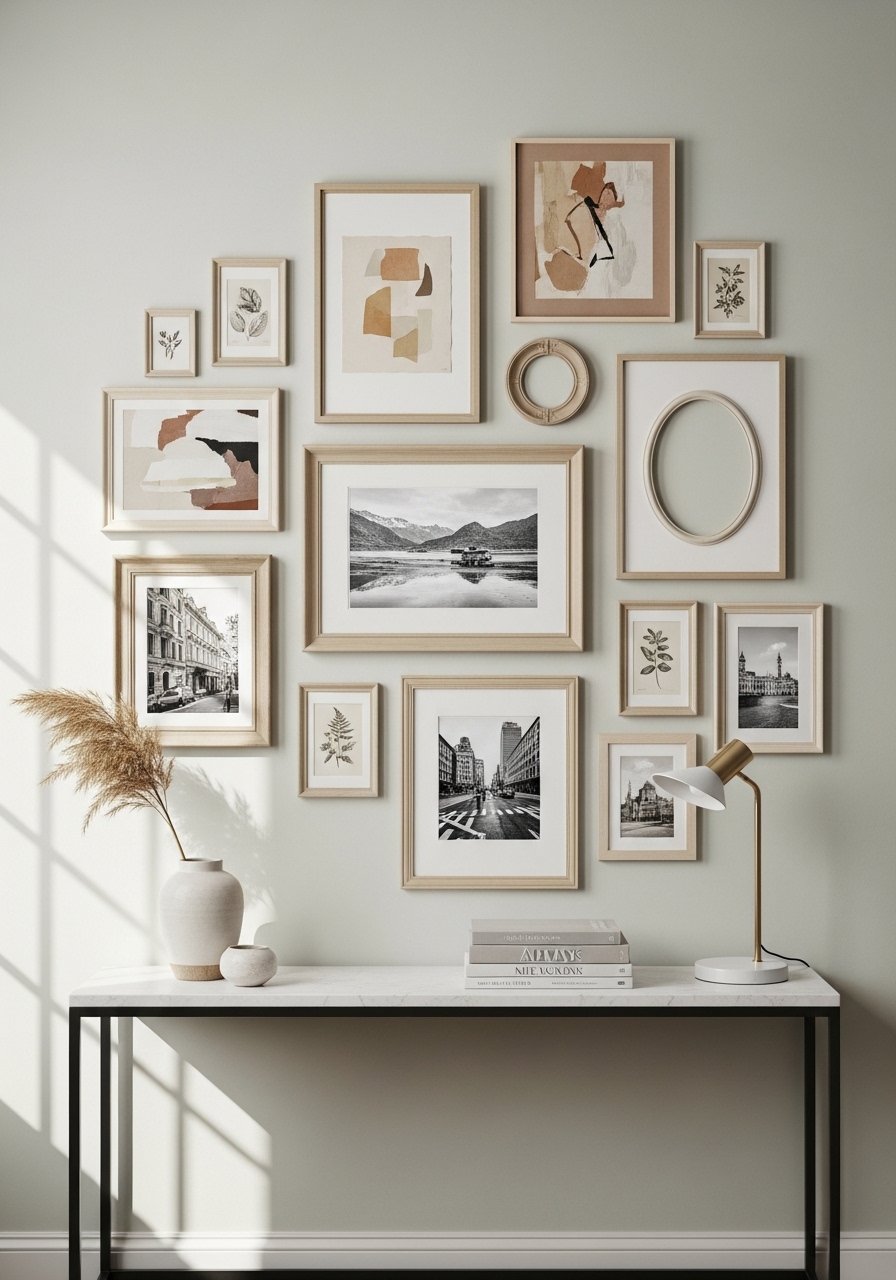 I thrifted frames, painted them warm cream, and filled them with neutral prints for a gallery wall that feels collected. Thrift scores cost less than buying new frames and add personality. I used fresh mats from Amazon to polish the look: white-picture-mats-11×14. Keep a consistent mat color and vary frame sizes for rhythm. Mistake to avoid: hanging frames too close together; give them breathing room so each piece reads as part of a curated set.