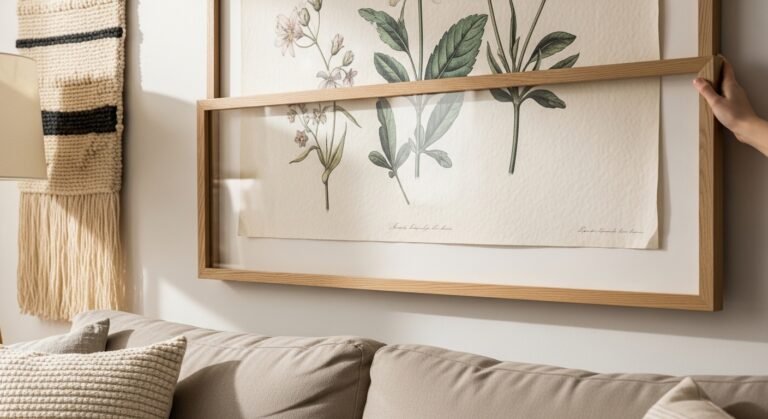 Read ArticleA real, lived-in living room showing the final result of DIY wall art made without painting skills. Natural daylight, soft
