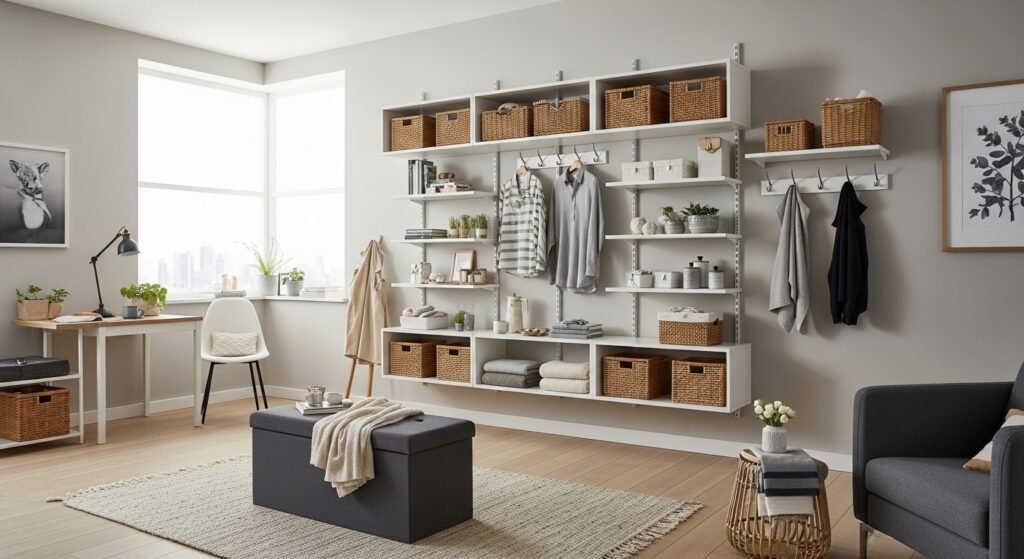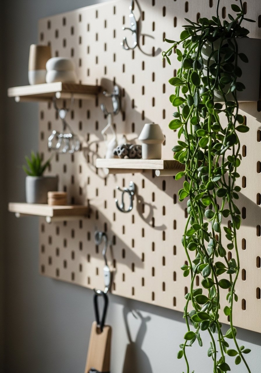 One insight I keep repeating is to stagger shelf heights by about 6 inches. It looks intentional rather than random. Mistake to avoid: overfilling upper shelves with heavy items. Keep heavier things lower, and decorative or lighter boxes higher. If you use a pegboard, choose metal hooks with rubber tips for a cleaner look.