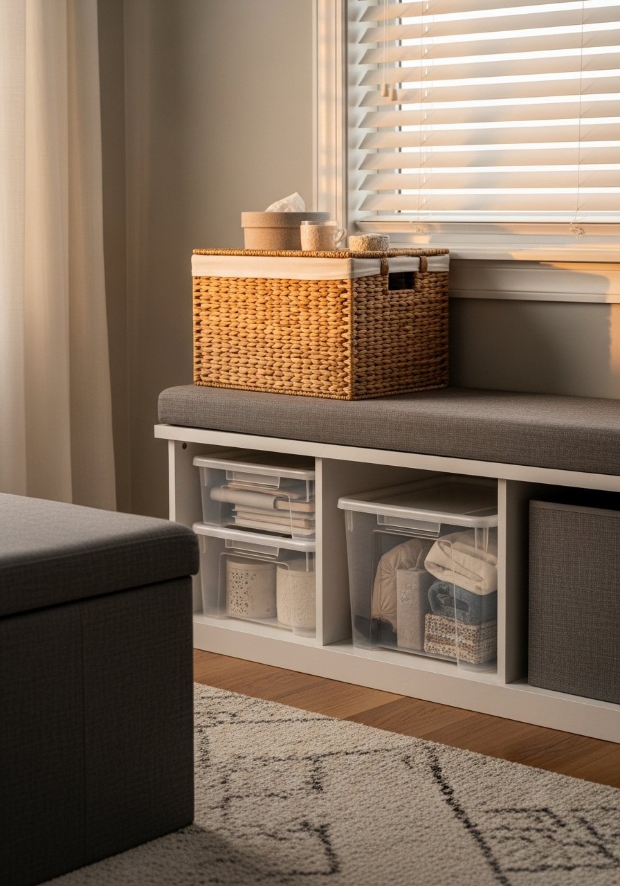 A good test is to limit three materials in a small room. Too many finishes look chaotic. One mistake is buying oversized baskets because they feel cheaper. They swallow items and look clunky. Use the under-bed bag for flat items and the ottoman for bulky but infrequently used things. A stack of clear bins at the foot of a bed keeps things accessible but tidy.