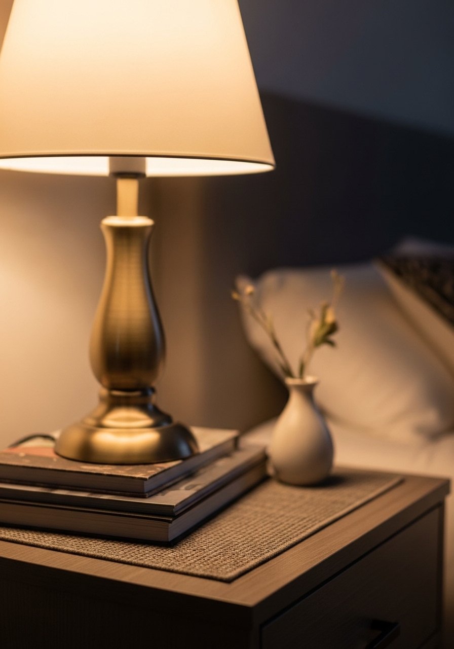 I finish by editing. Fewer pieces with deliberate spacing read better than many small objects crowded together. I check ratios. Two tall items, three medium, and one low anchor the surface well. I also test the lighting at night. Lamps should give a warm pool of light that makes the bed look cozy.