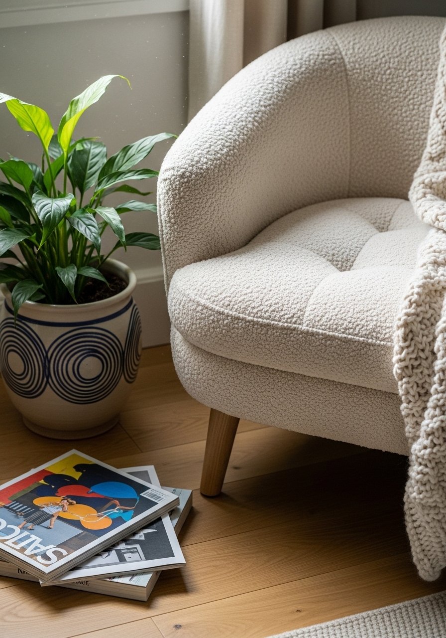 I treat awkward corners like small stages. I bring in one piece that fits the scale—a bouclé accent chair or a narrow console—and let it breathe. That single choice fills the silhouette of the corner and reads as purpose, not leftover furniture. The corner stops feeling dead and starts to look like a place to sit.