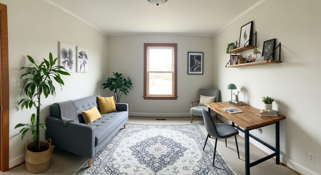I started adding small DIY touches—textiles, a simple shelf, and a plant—and the room stopped looking like a workspace and started feeling like a place I wanted to sit in. These moves are easy and calming.