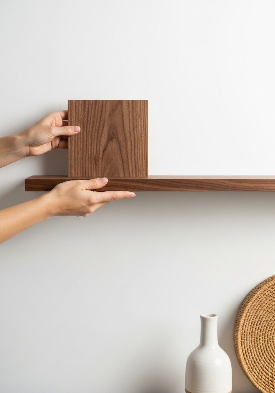 I match the shelf finish to other finishes in the room. Warm walnut reads cozy in an organic modern space. White shelves feel cleaner in a Japandi or minimal living area. The finish makes the shelf belong or stand out.