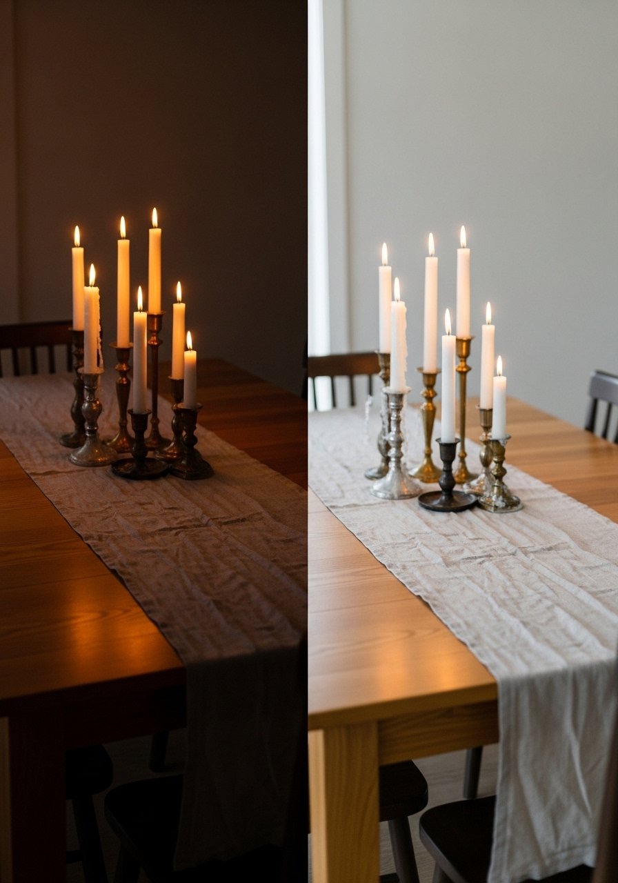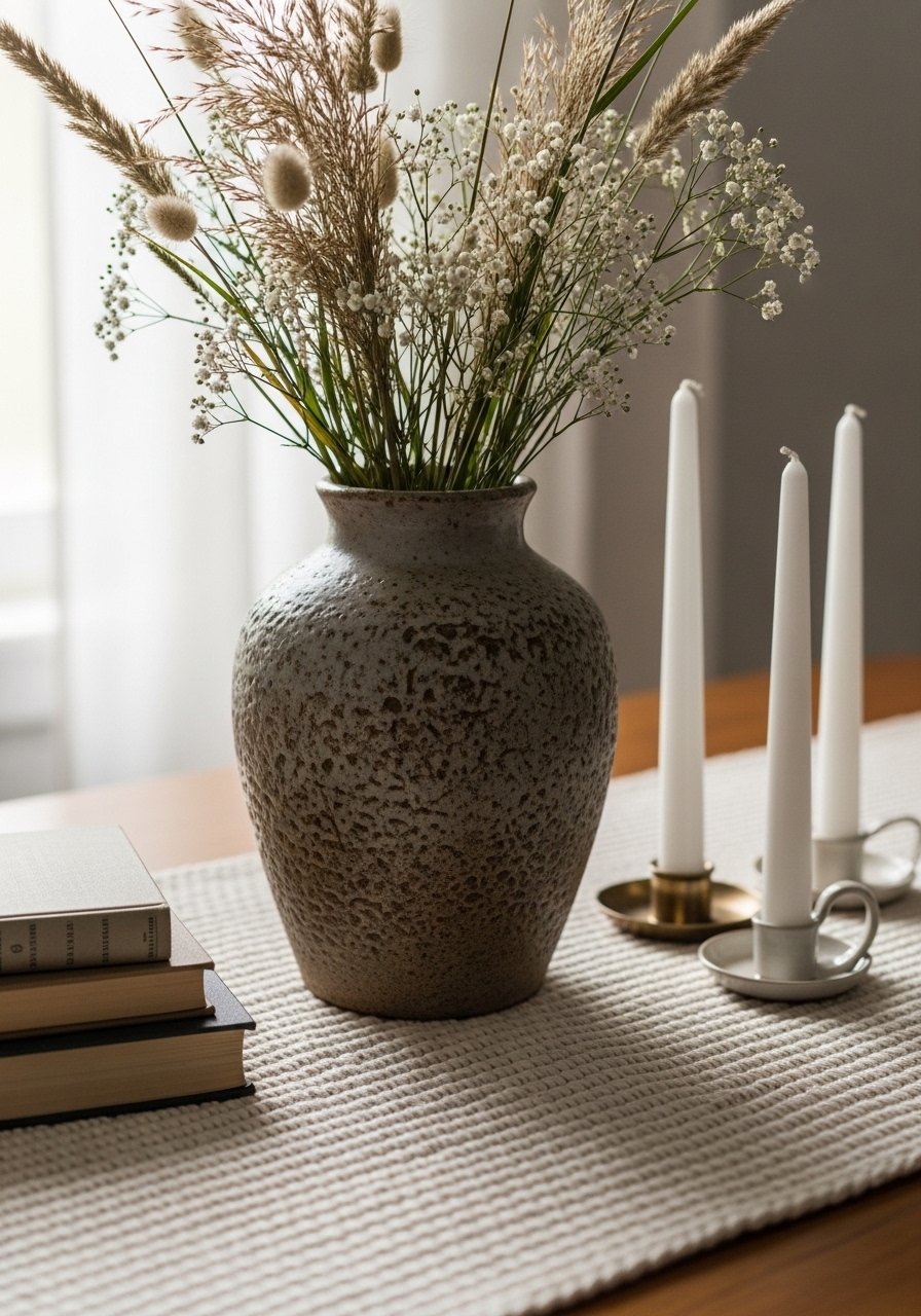 Visually the table stops feeling flat. One insight: leave negative space—don’t cover the runner end-to-end with objects. That space is what reads as calm. A common mistake is overcrowding; too many small pieces reads noisy instead of collected.