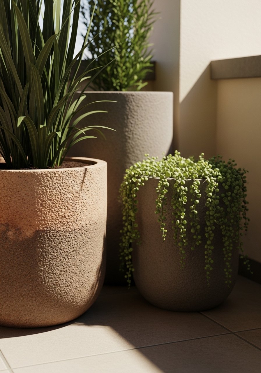 I group at least three planters of different heights in a corner or beside seating. I always include one taller structural plant, one mid-height leafy planter, and one trailing pot. Grouping creates a layered backdrop that reads like a single planted piece.