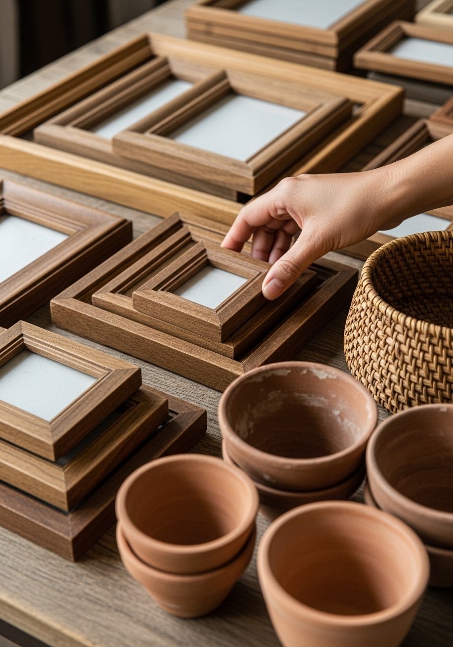 I start by editing what I already have. I put similar materials together—rattan with wood, clay with matte metals—so even mixed eras feel like they belong. That gives instant cohesion.