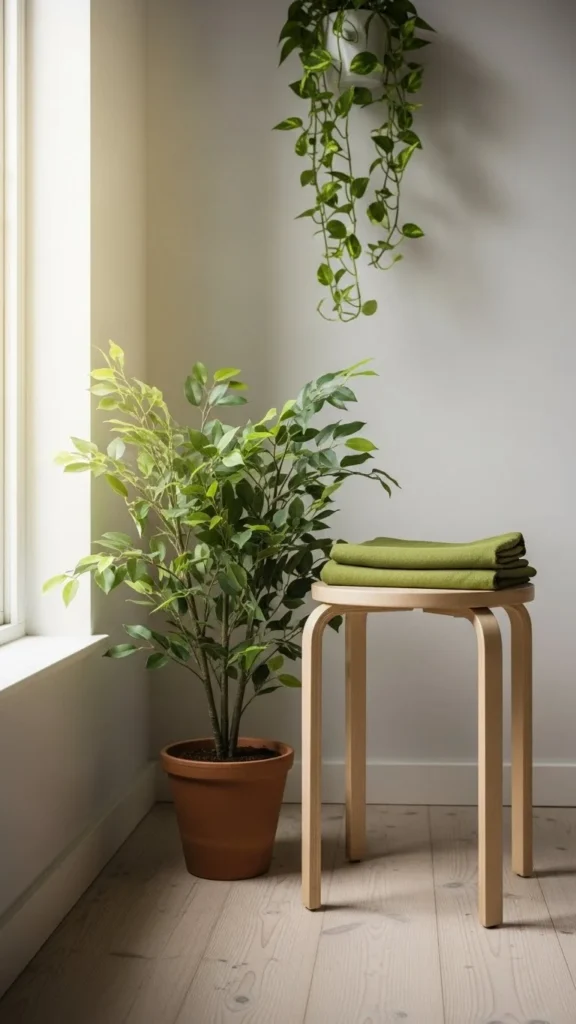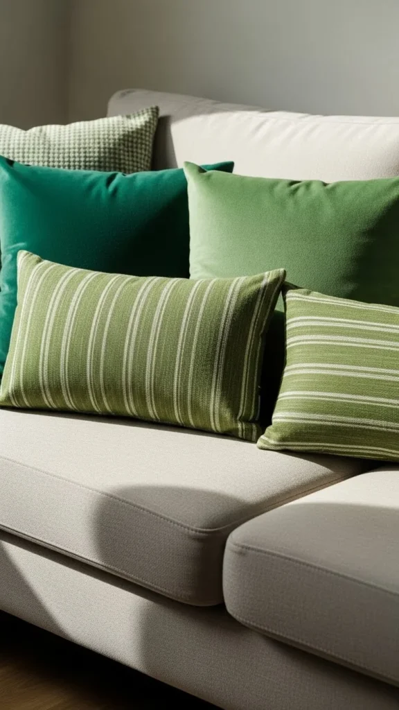 Choose one corner of a room. Add a green pillow, folded throw, or plant. Keep everything else neutral.