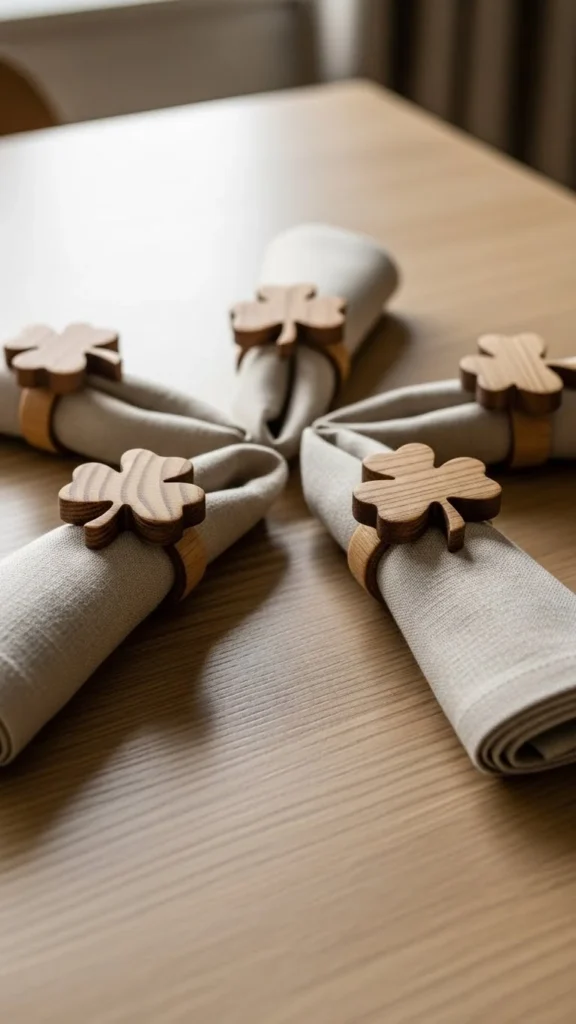 Cut shamrock shapes from felt or thick paper. Attach them to small paper loops or string rings. Slide cloth napkins through the center.